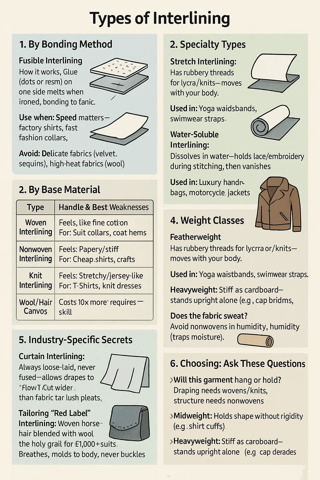 | ทอ Interlining | • ให้ความรู้สึกเหมือนผ้าฝ้ายเนื้อดี• สำหรับ: คอปกสูท และชายเสื้อโค้ท | ริ้วรอยถ้าเกรนตัดผิด |